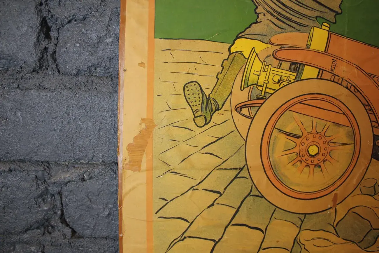 Cette affiche Automobiles Barré, réalisée par l’artiste Walter Thor circa 1910, est une pièce de collection exceptionnelle.
