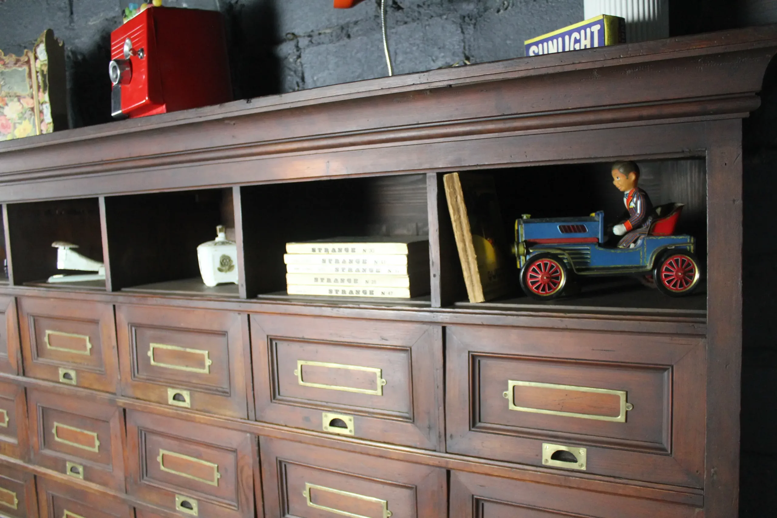 Meuble de métier minutier de notaire restauré, 40 portes laiton, rangement exceptionnel, pièce rare.