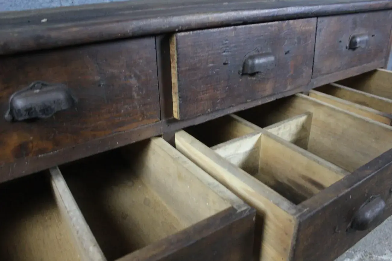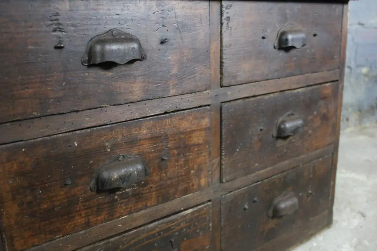 Certains tiroirs conservent encore la visserie d’époque, témoignant de son histoire.