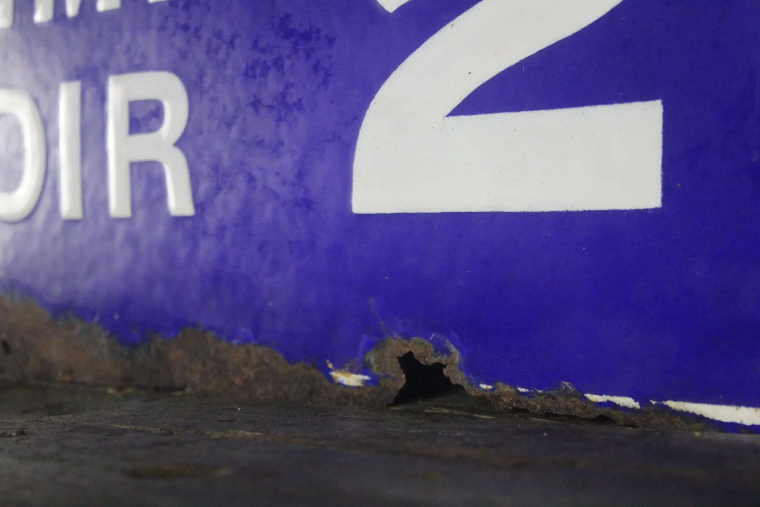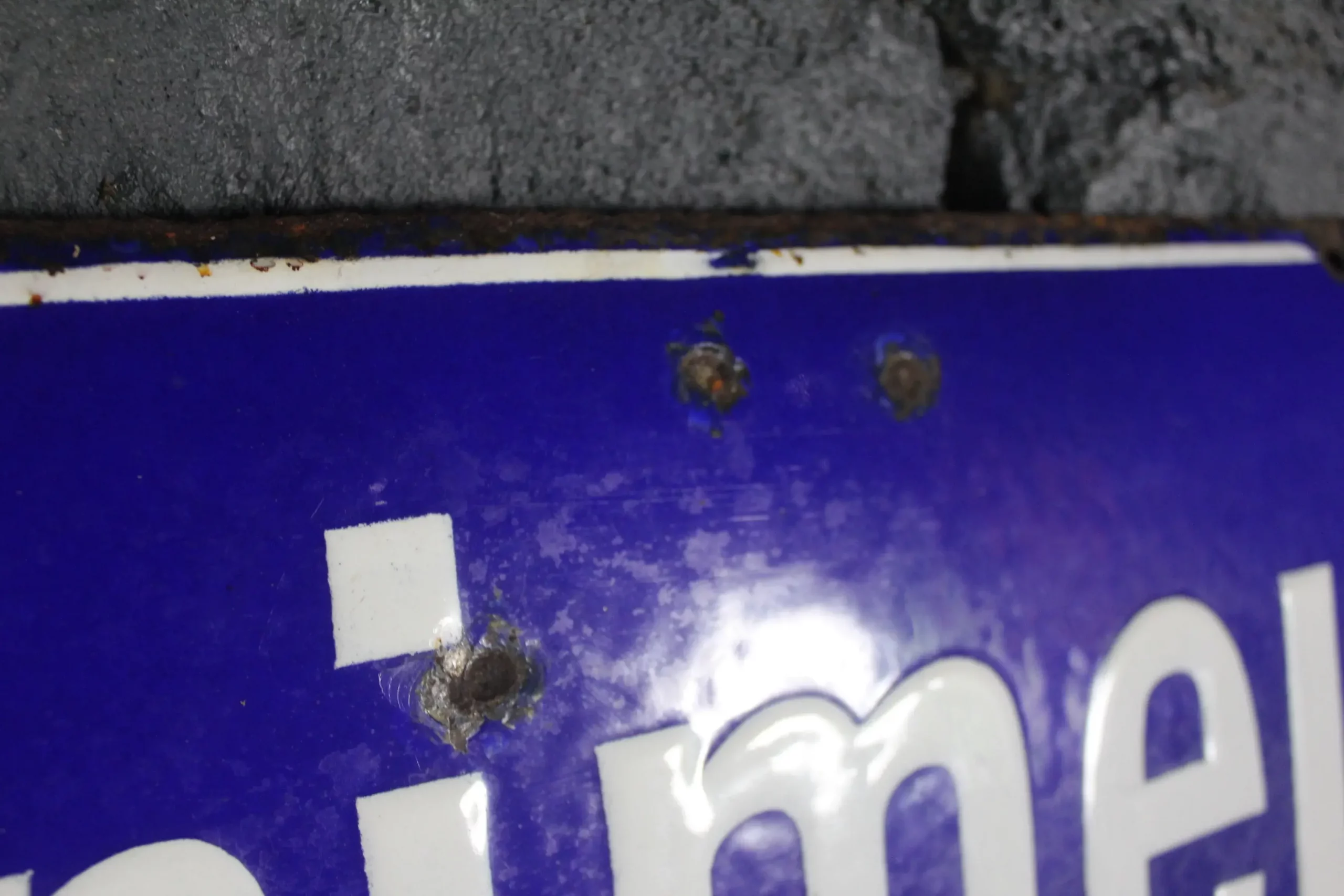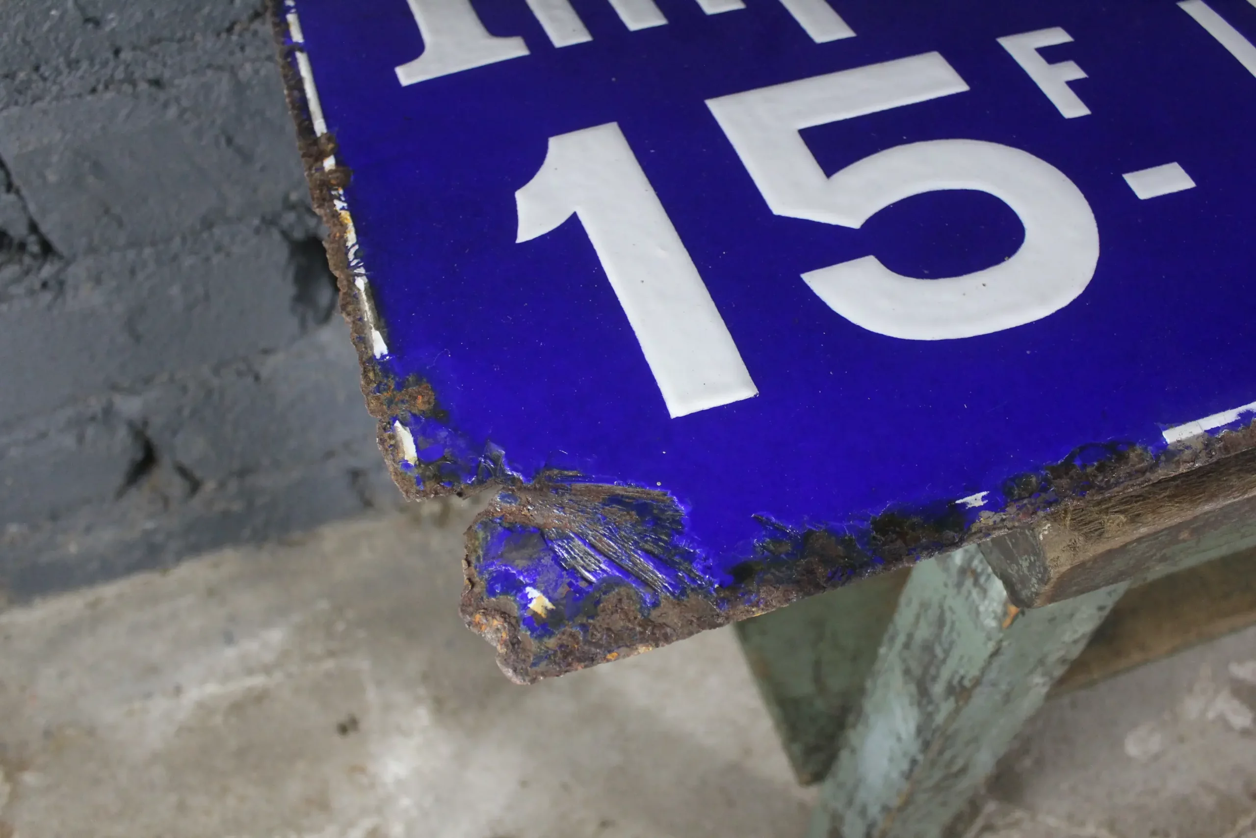 Cette plaque ne peut pas être accrochée, mais elle reste une pièce de collection unique pour les passionnés d’objets publicitaires anciens et de style industriel.