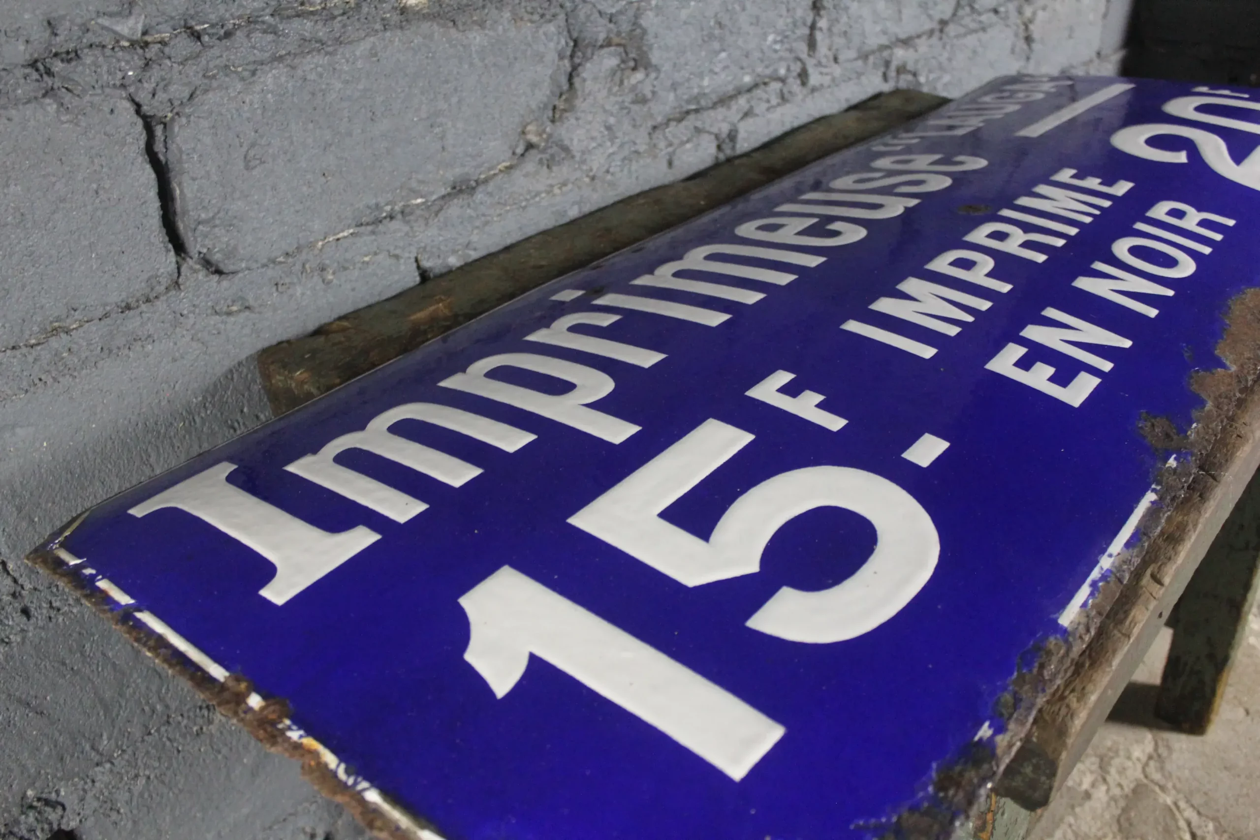 Utilisée par une imprimeuse, elle arbore une inscription « 15F-20F » et un bleu profond caractéristique de cette époque.