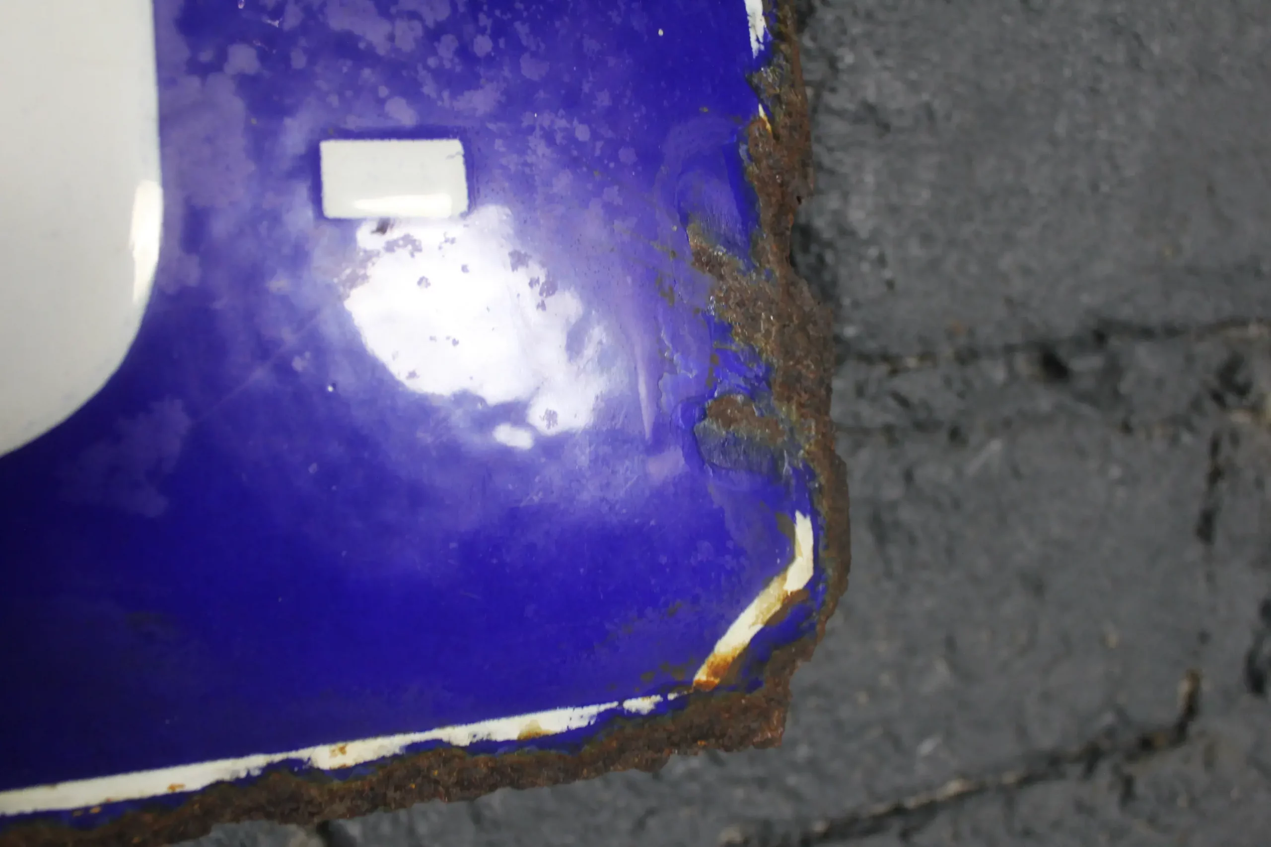 L’émail épais et la forme bombée de la plaque témoignent de sa qualité de fabrication.