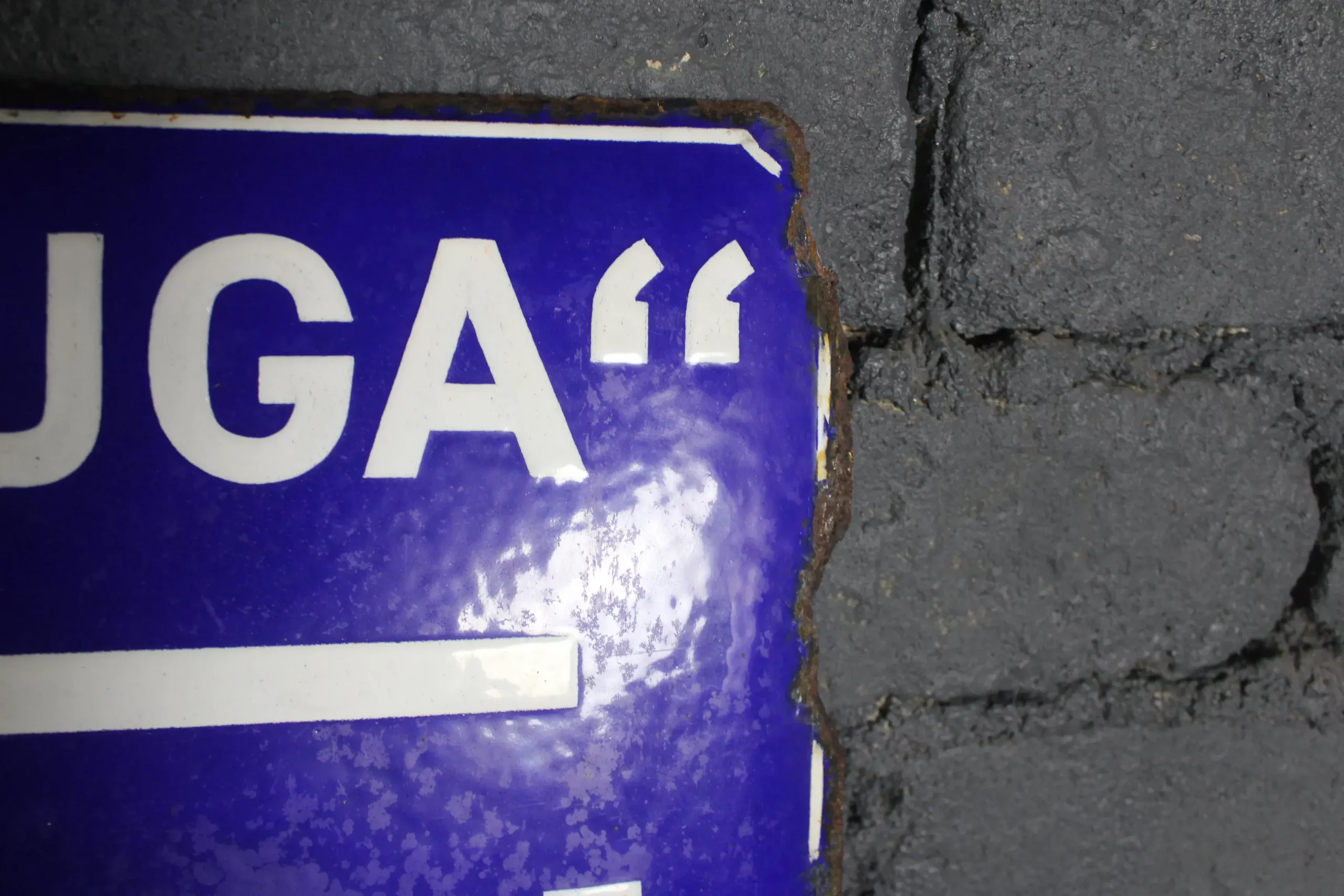Cette plaque émaillée « LAUGA » est un modèle rare et authentique, typique des années 20.