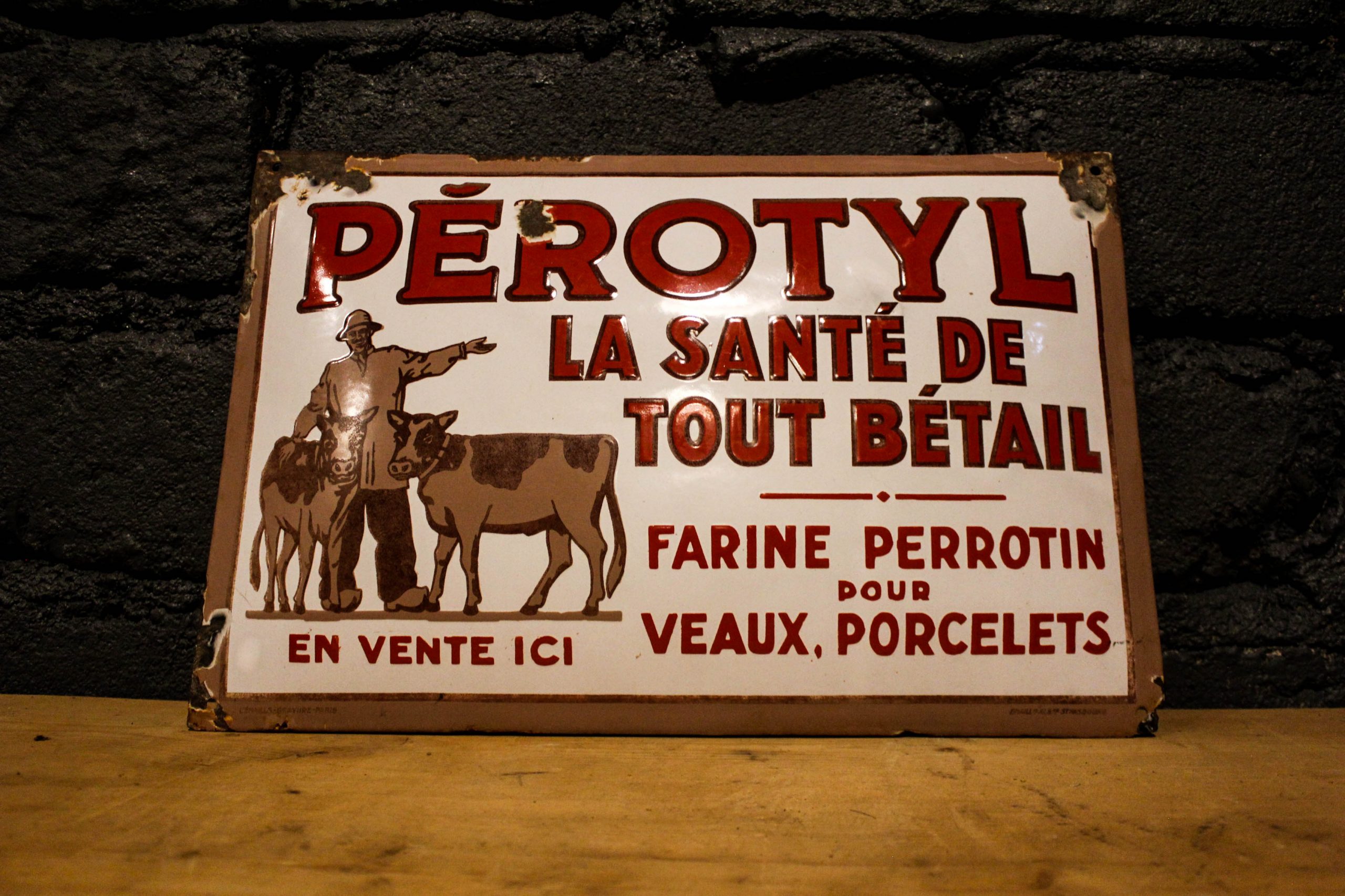 Plaque émaillée Pérotyl avec un joli bombé.