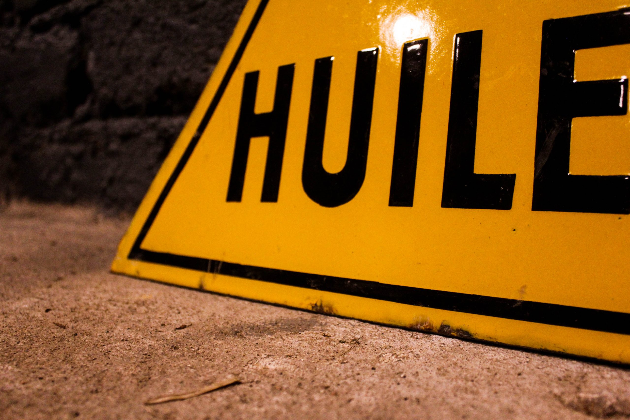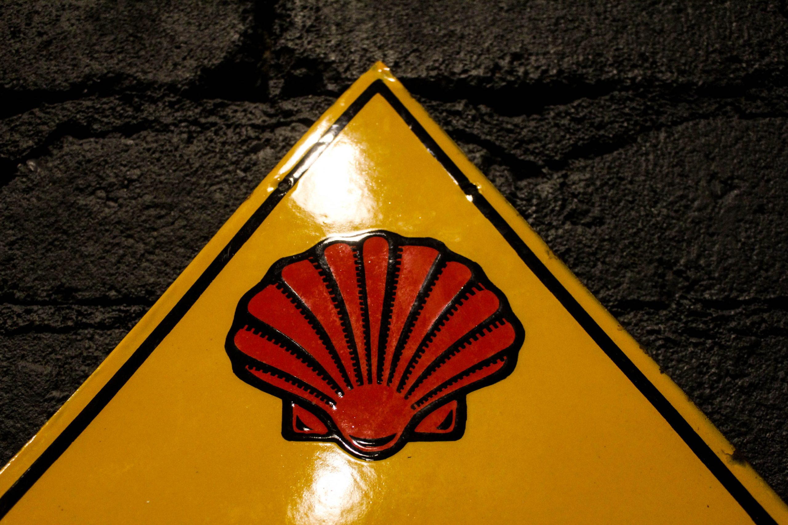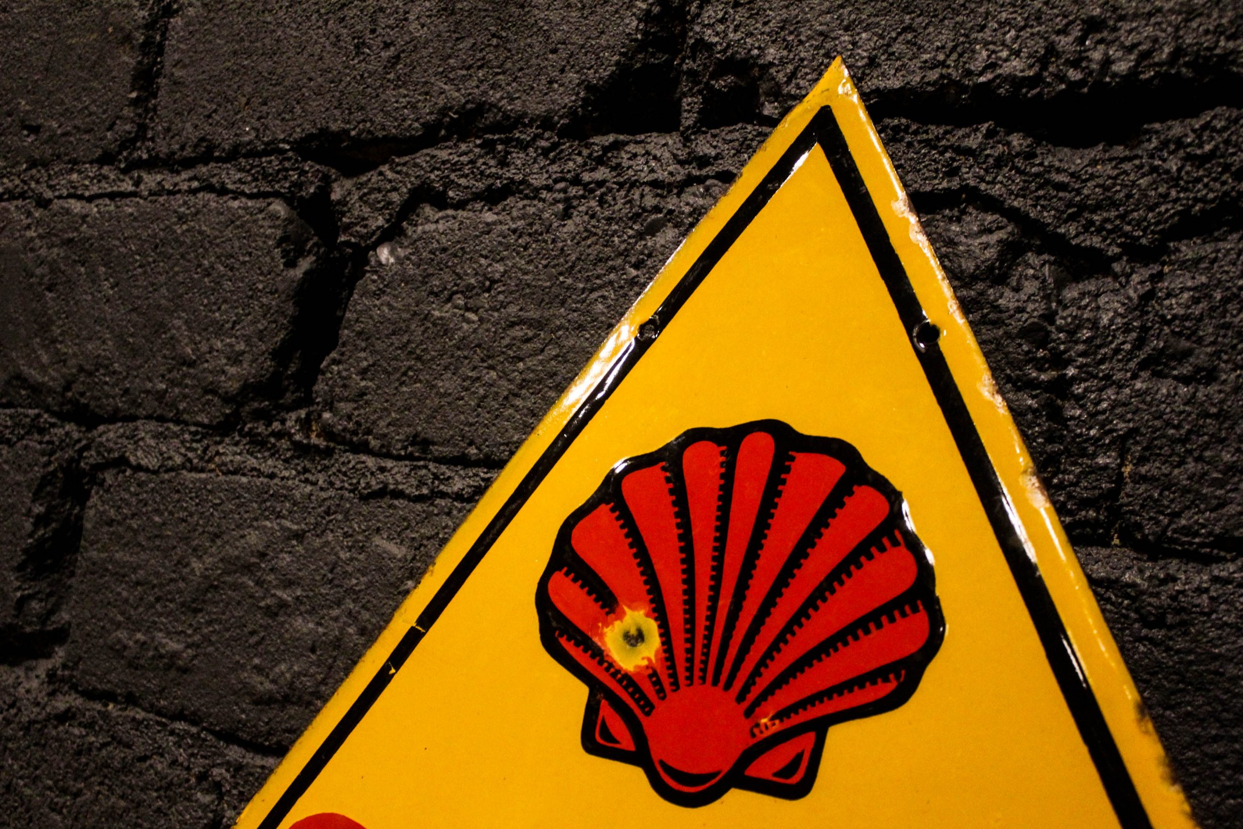 Plaque émaillée triangulaire SHELL, double face, années 30.