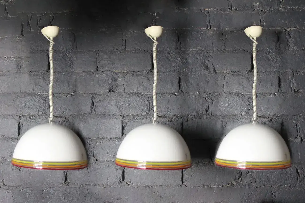 Ces suspensions Febo sont des pièces de collection rares, parfaites pour les amateurs de design italien et d’éclairage d’art.