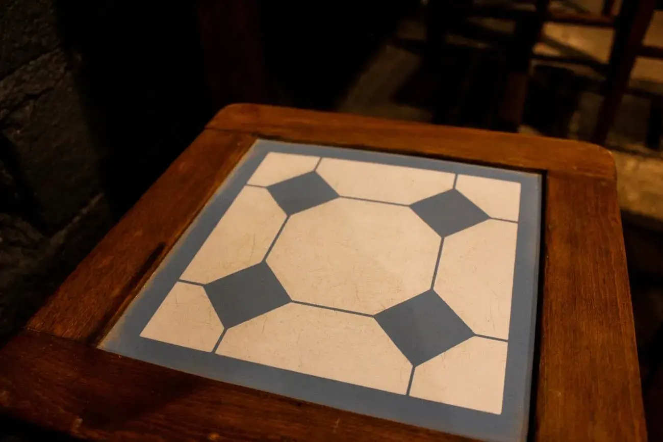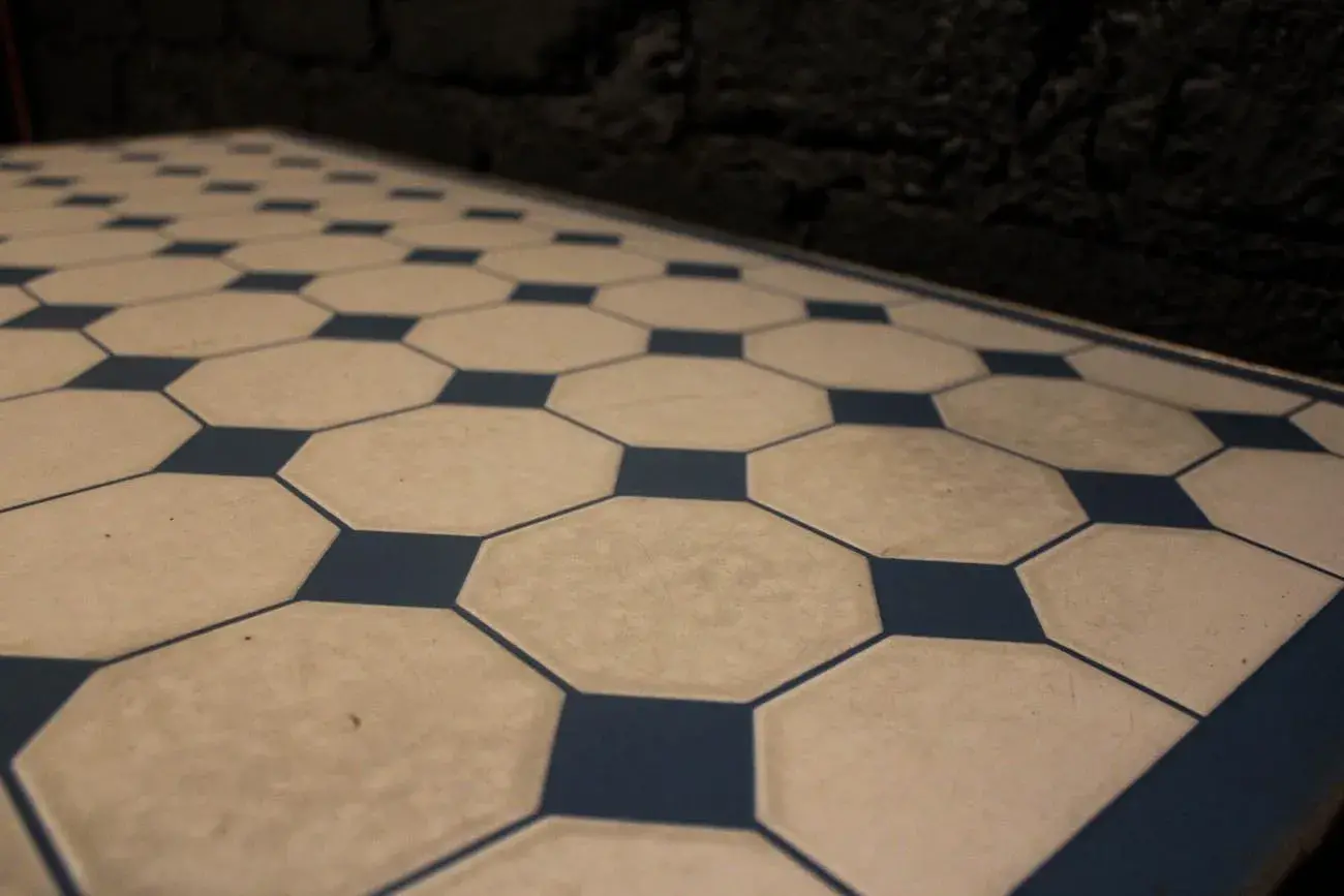 Un véritable bijou de décoration, cet ensemble se distingue par ses carreaux émaillés bleu et blanc, typiques du style rétro.